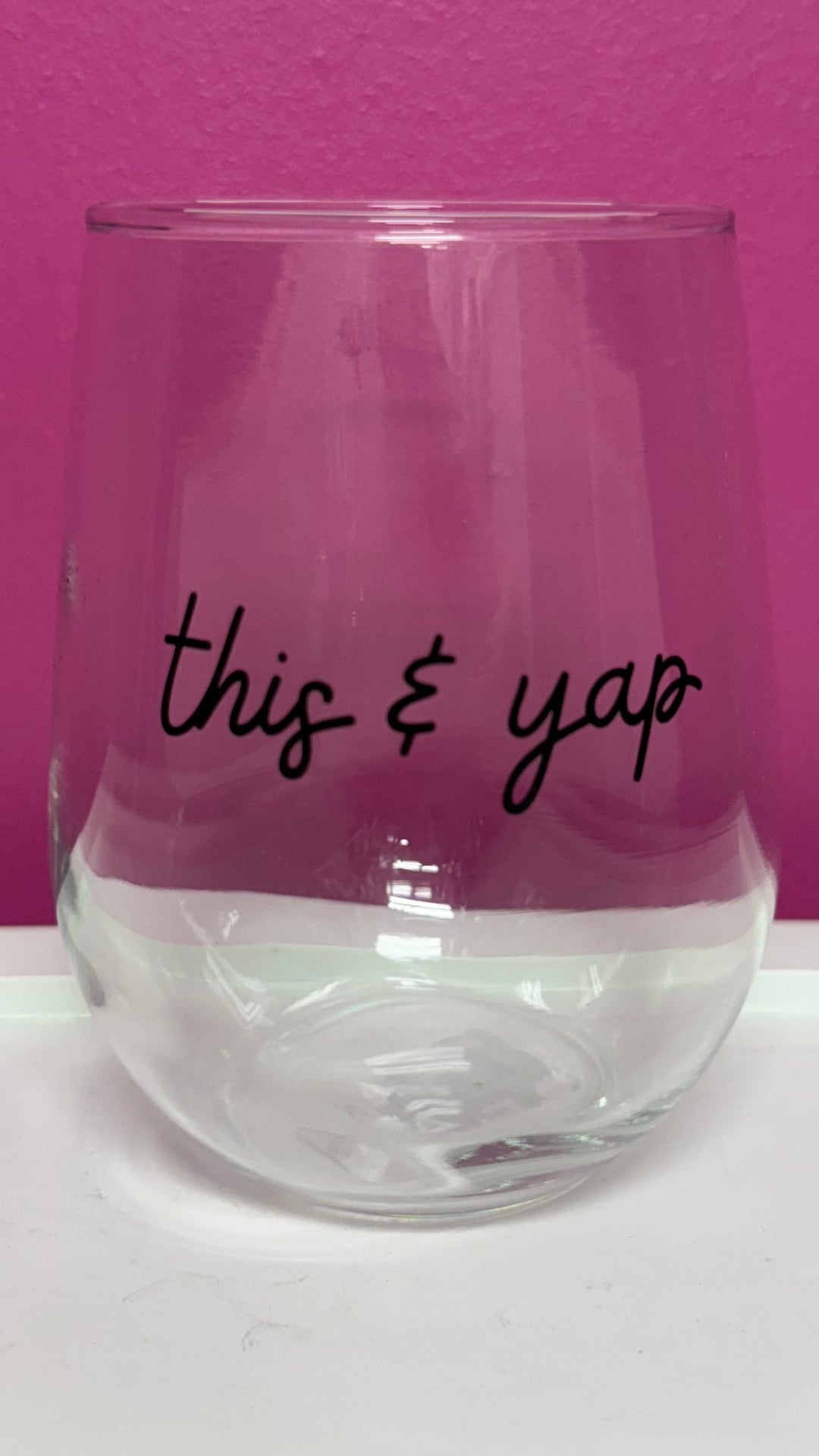 Bring a splash of fun to your drinkware with the This & Yap Stemless glass. Perfectly designed for casual sipping, it adds a playful twist to your favorite beverages. When you're sharing laughs with friends, this glass keeps the good times flowing with style and comfort.