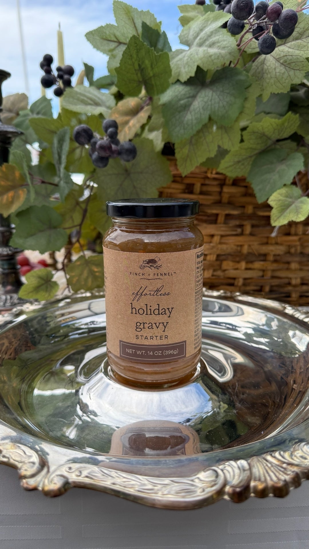 Our Finch + Fennel Effortless Holiday Gravy Starter is a classically seasoned gravy with notes of roasted turkey, caramelized onions, and fragrant herbs. This gravy starter is ideal for elevating any holiday meal within minutes.