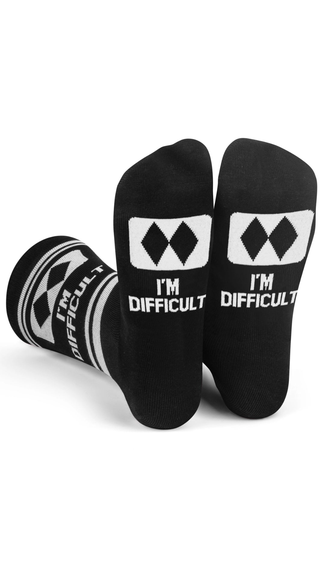 Make a statement without saying a word! Our 'I'm Difficult' socks are designed for those with a playful spirit and a bit of an attitude. Each pair showcases a hilarious message on the soles, adding a touch of joy and laughter to your day.