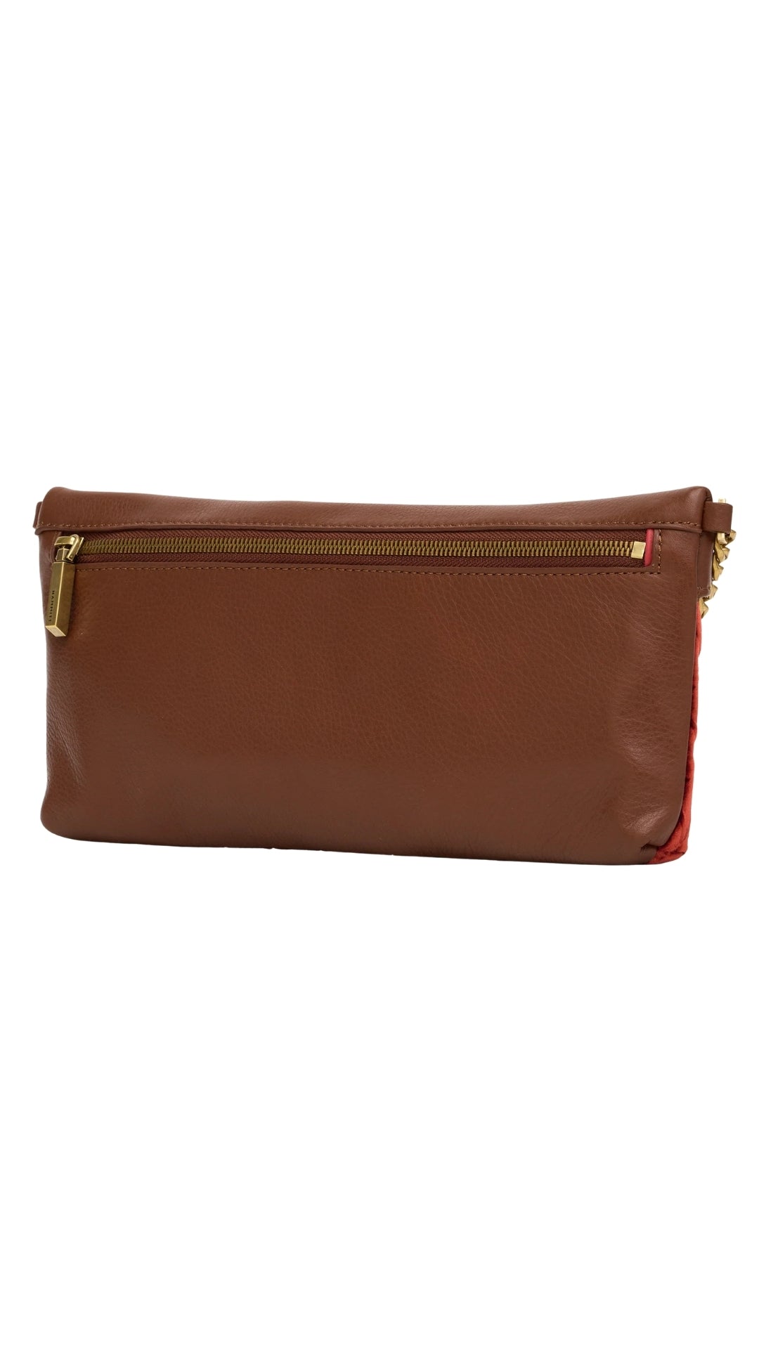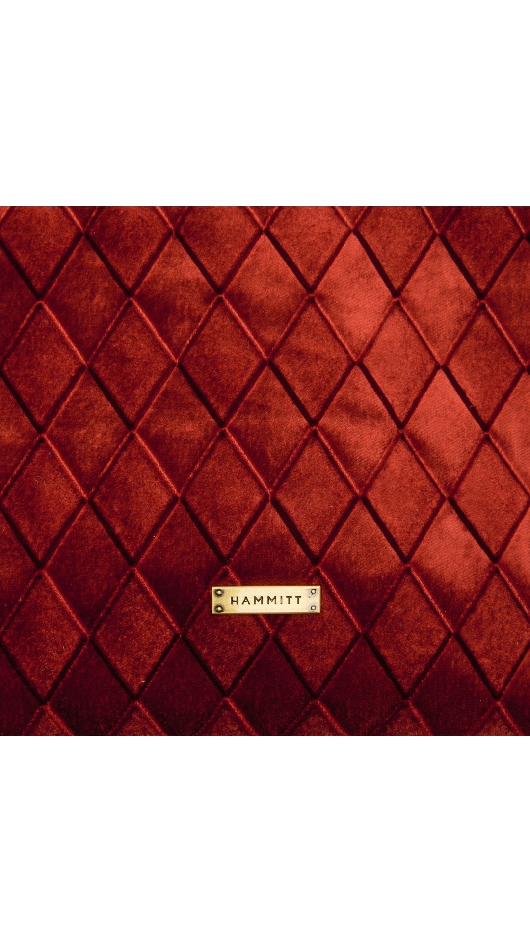 • Crafted with a deep, saturated, toasted orange-patterned Italian velvet with hints of russet, umber, and sienna, and deep brown pebble leather accents