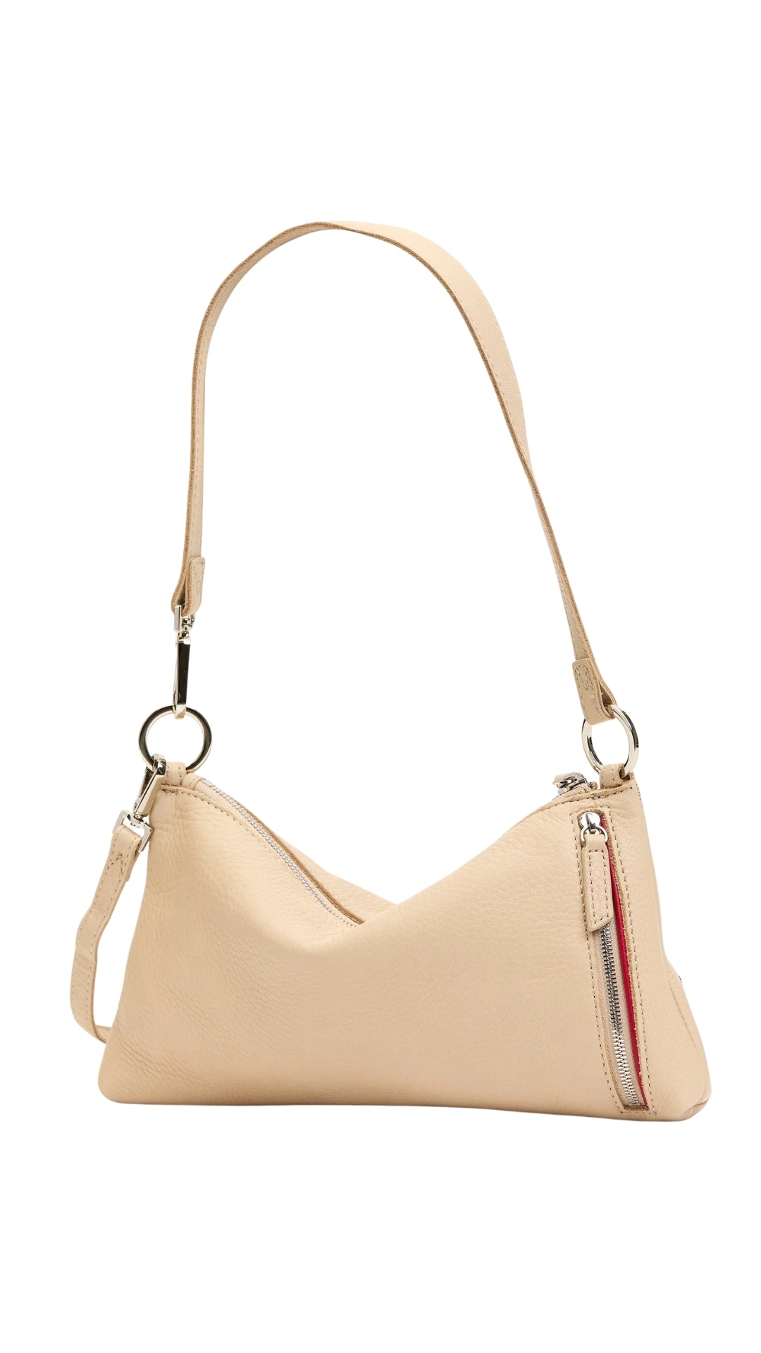 • Crafted with a warm cream pebble leather with beige and taupe undertones