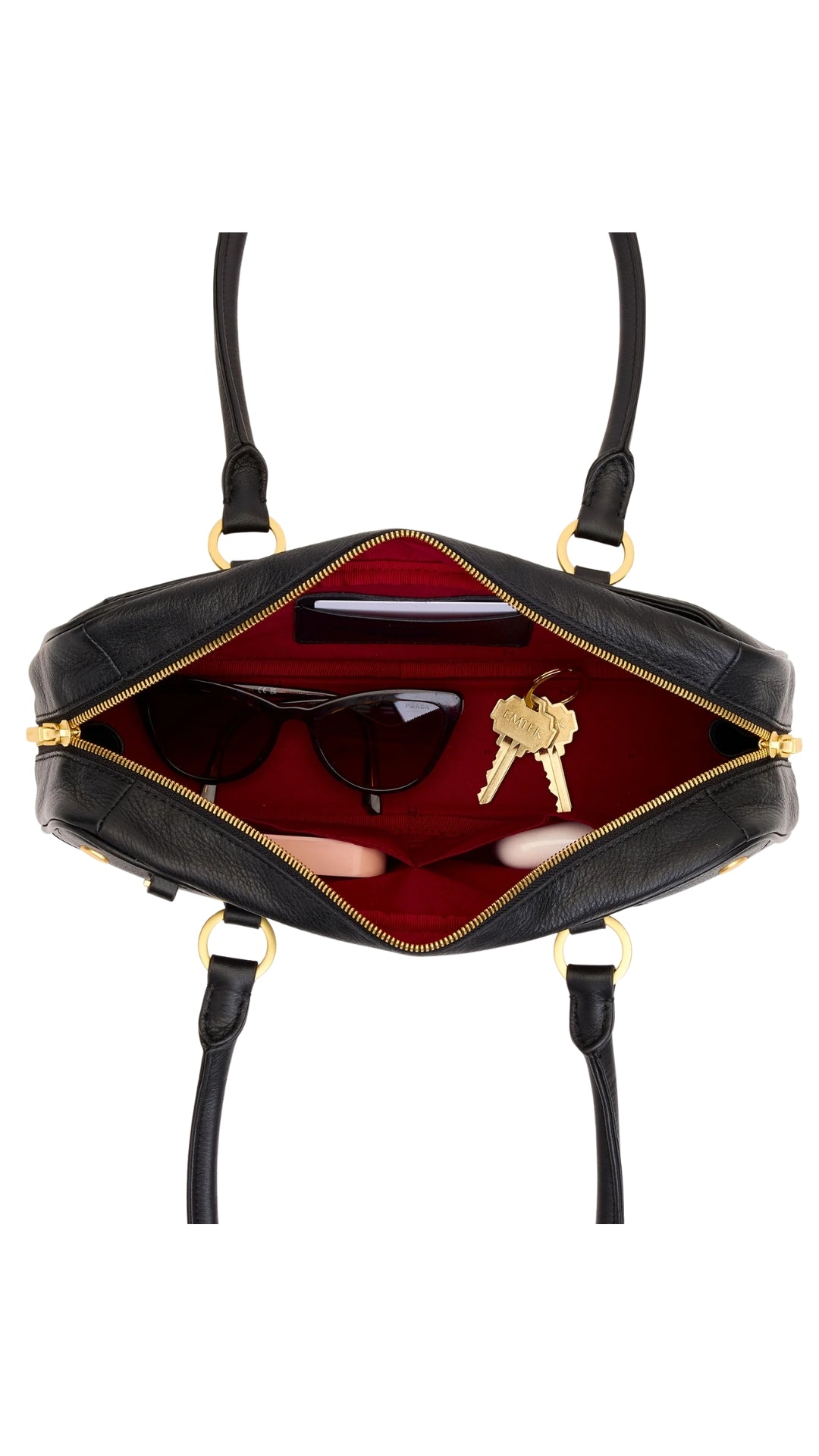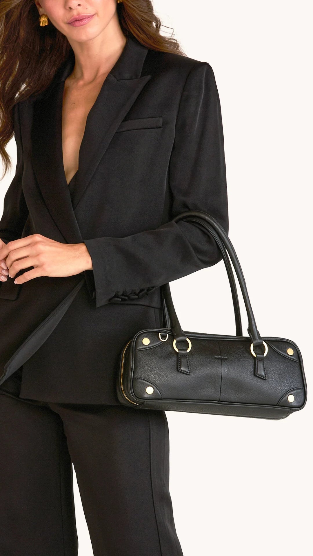 Say hello to our first-ever doctor-style meets bowling bag silhouette — the Meredith. Named after Meredith Grey of Grey’s Anatomy, this bag is classic at heart but full of modern attitude, featuring a bold handle drop and sleek corner patches that elevate its timeless shape. Outside, two D-rings are ready for your favorite charms or an extra strap - it is crossbody ready (sold separately). Inside, smart storage includes two flat pockets and a dedicated card slot to keep your essentials in check. And, thanks to the structured gussets and all-around zip, the wide opening makes grabbing what you need feel effortless.