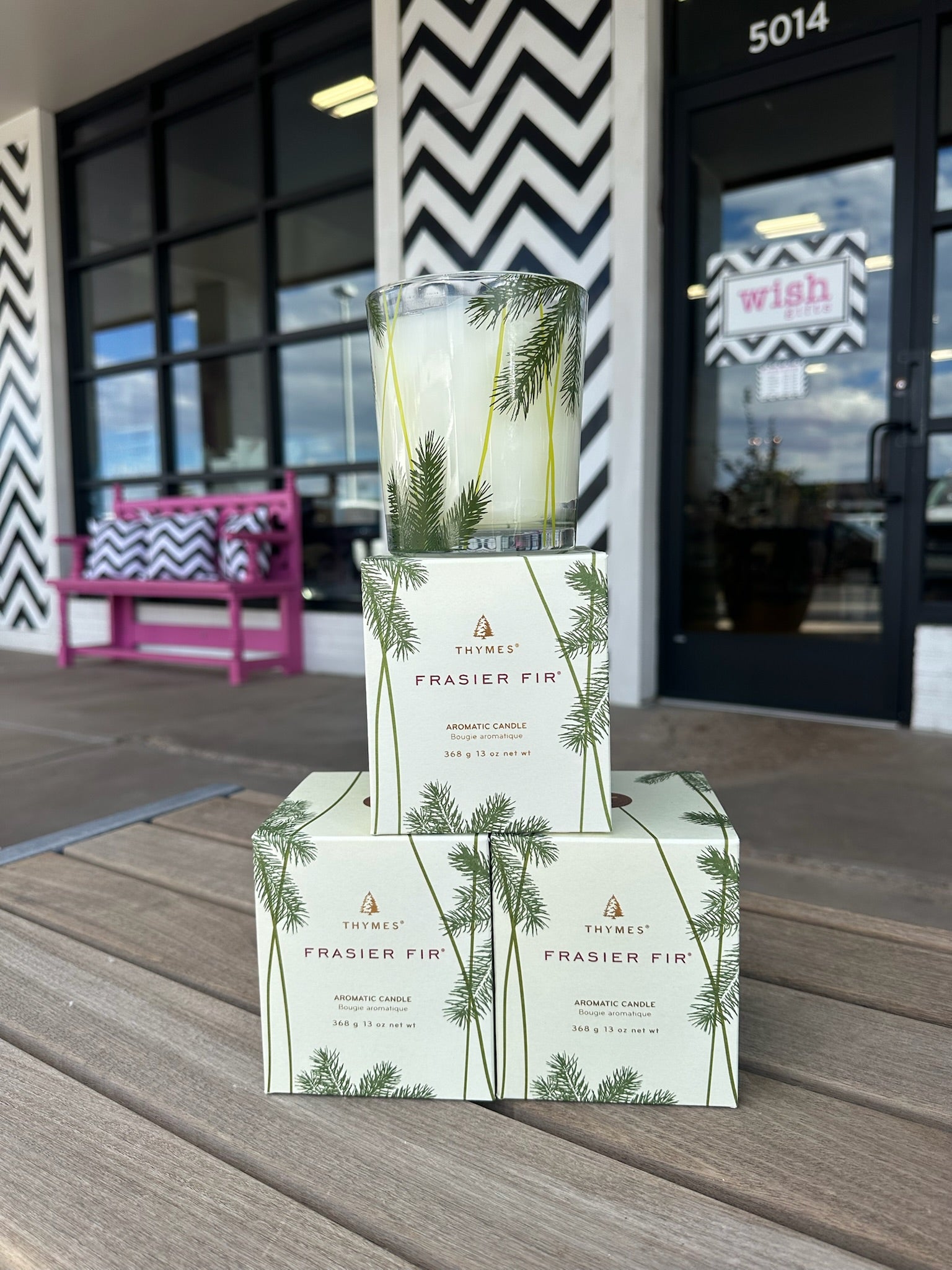 Snow-white wax poured into clear glass, embellished with the classic pine needle design is truly an illuminating focal point, filling your surroundings with Frasier Fir.