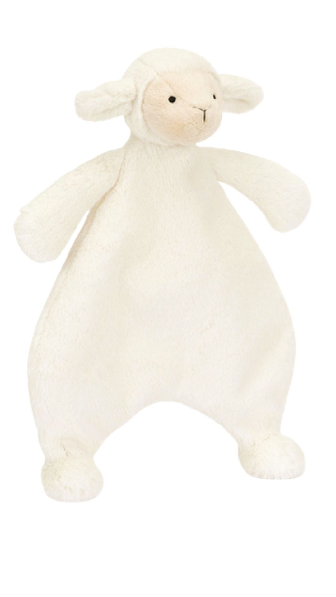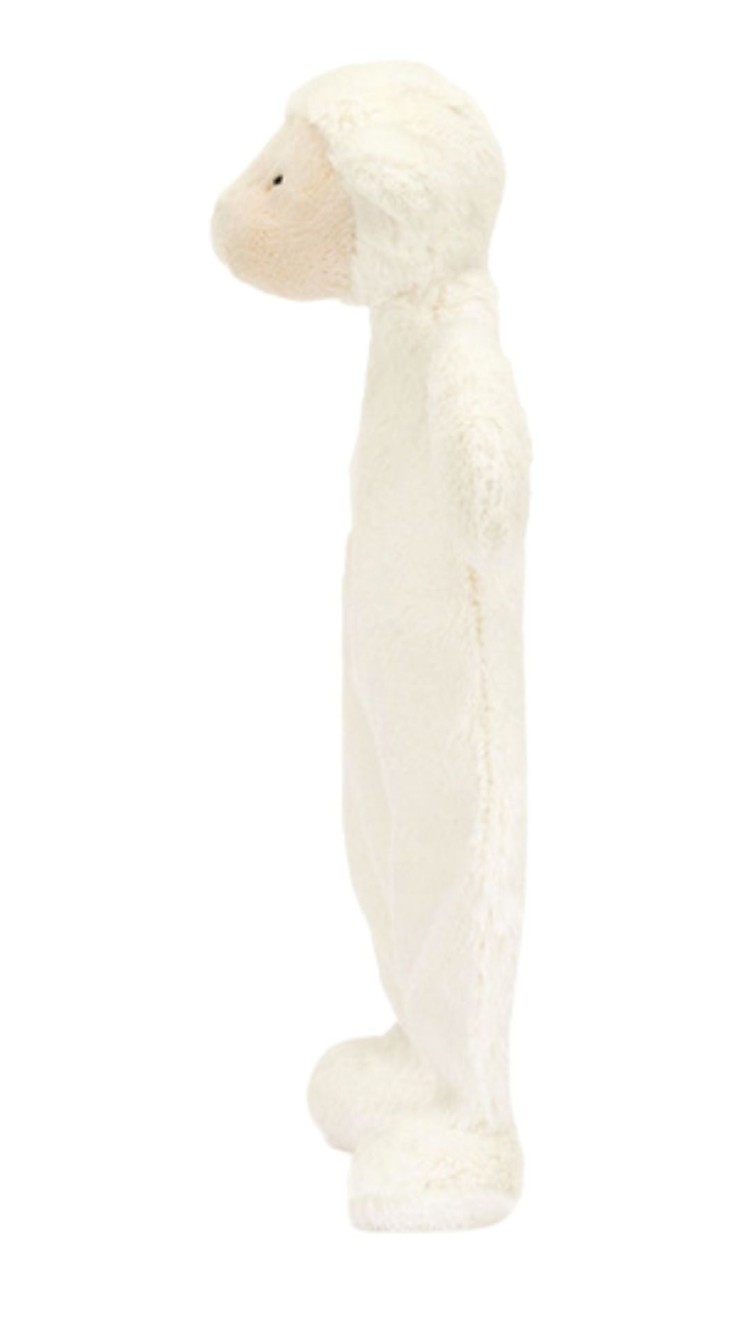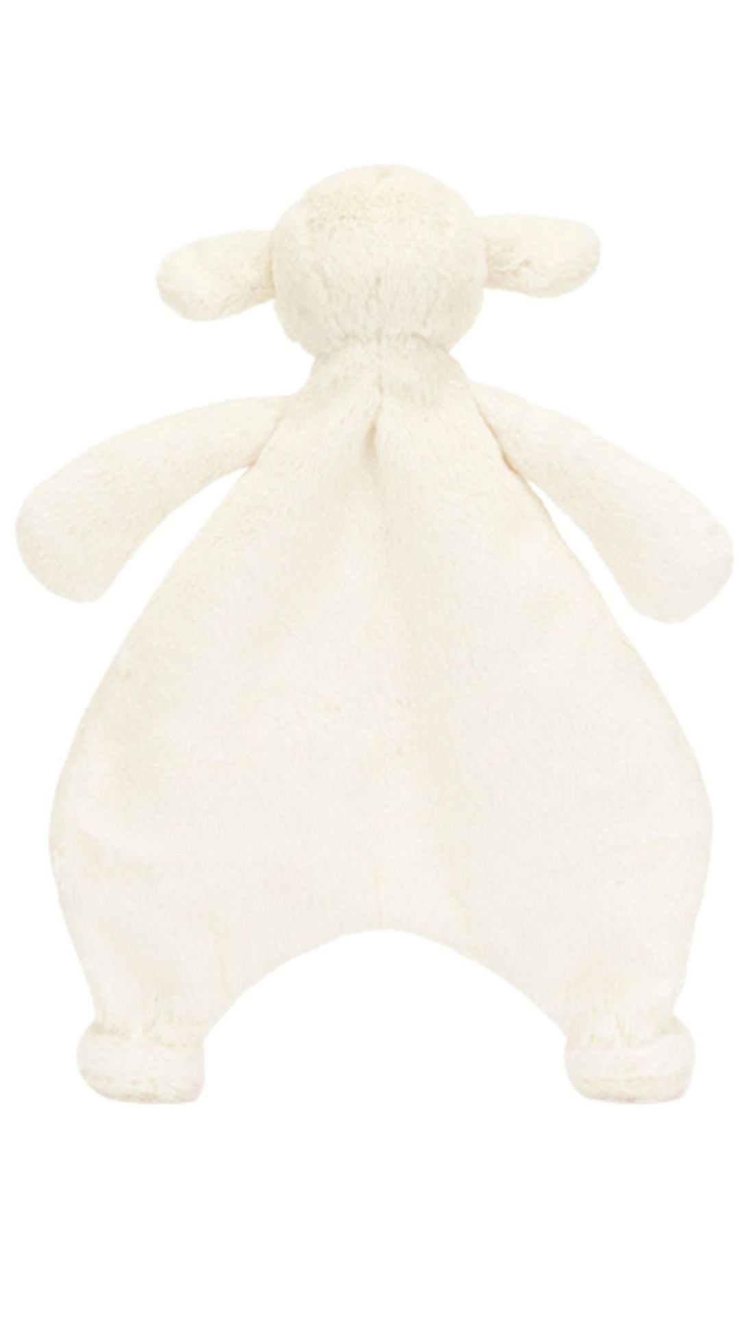 The Bashful Lamb Comforter is a delightful first companion for newborns, featuring sumptuous vanilla cream fur crafted from recycled fibers. Its thoughtful design pairs a lightweight un-stuffed body with irresistibly squishy paws and floppy ears—perfect for little hands to explore and cuddle. Playful embroidered facial features bring personality to this soft friend, making it an instant nursery treasure and a gift that grows with your baby through countless cozy moments. Perfectly paired with My Mom and Me Book.