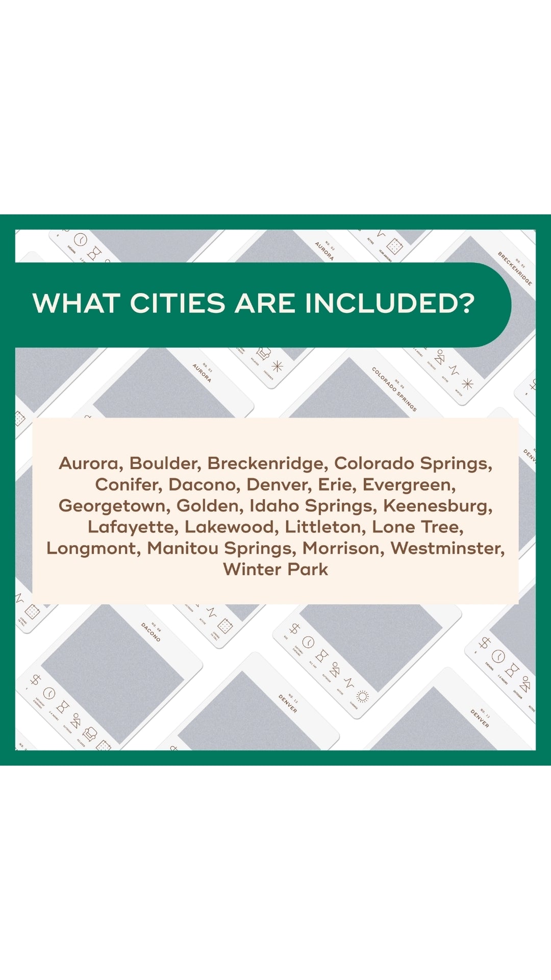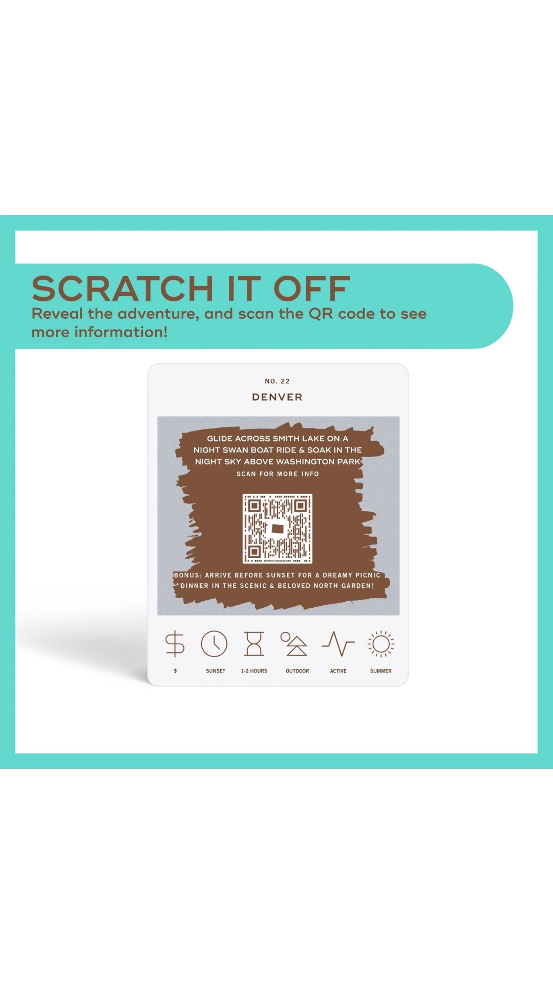 Discover 50 exciting adventures waiting just minutes from Denver! This interactive scratch-off card lets you explore different neighborhoods and uncover hidden gems tailored to your mood. Each card features helpful icons showing the best season, cost range, and ideal time of day for every activity. Whether you're seeking outdoor thrills, cozy indoor escapes, or budget-friendly fun, scratch to reveal your next Denver adventure. Perfect for locals looking to shake up their routine or visitors wanting authentic local experiences!