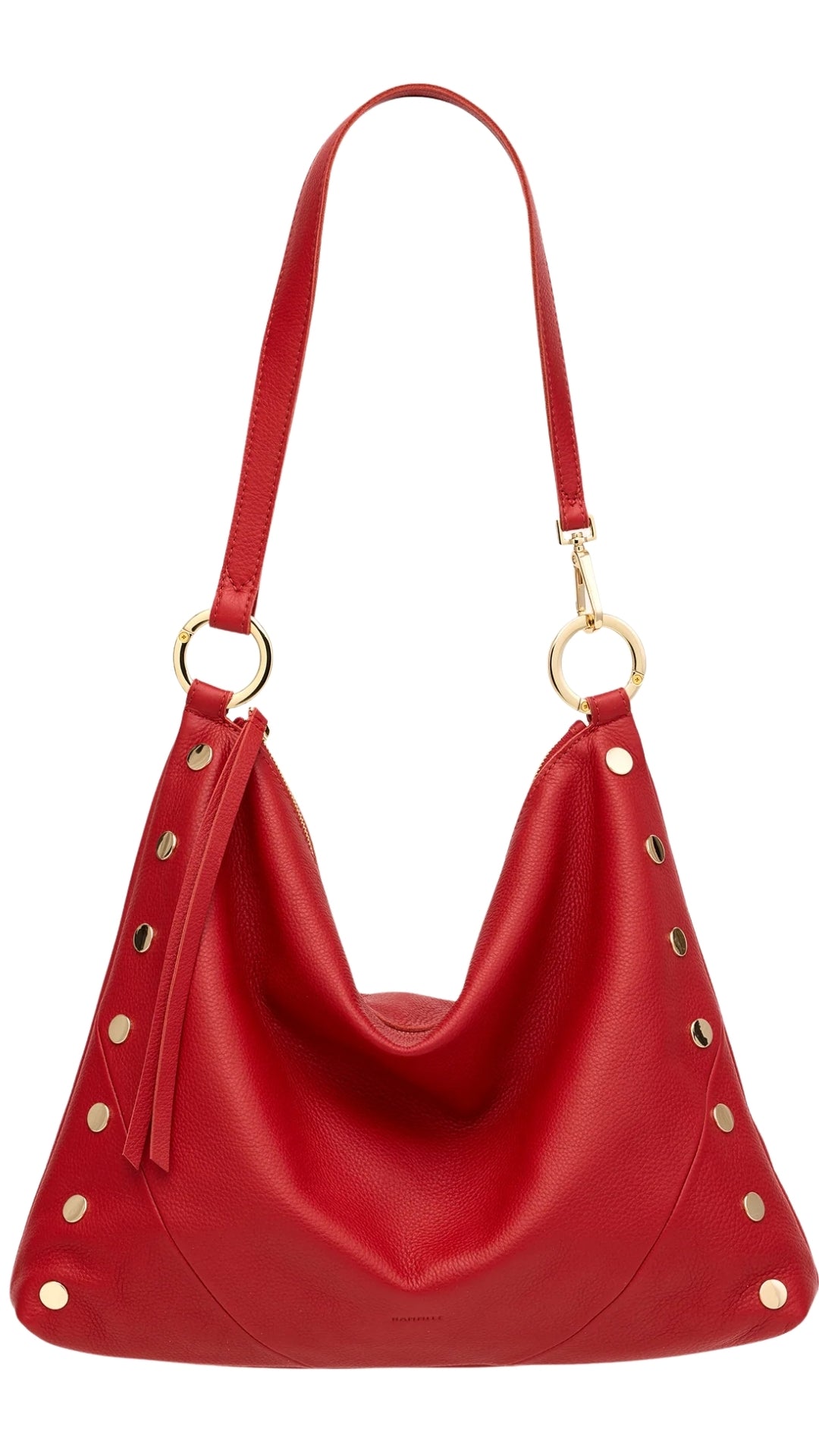 - Crafted with a bold, fiery true red pebble leather