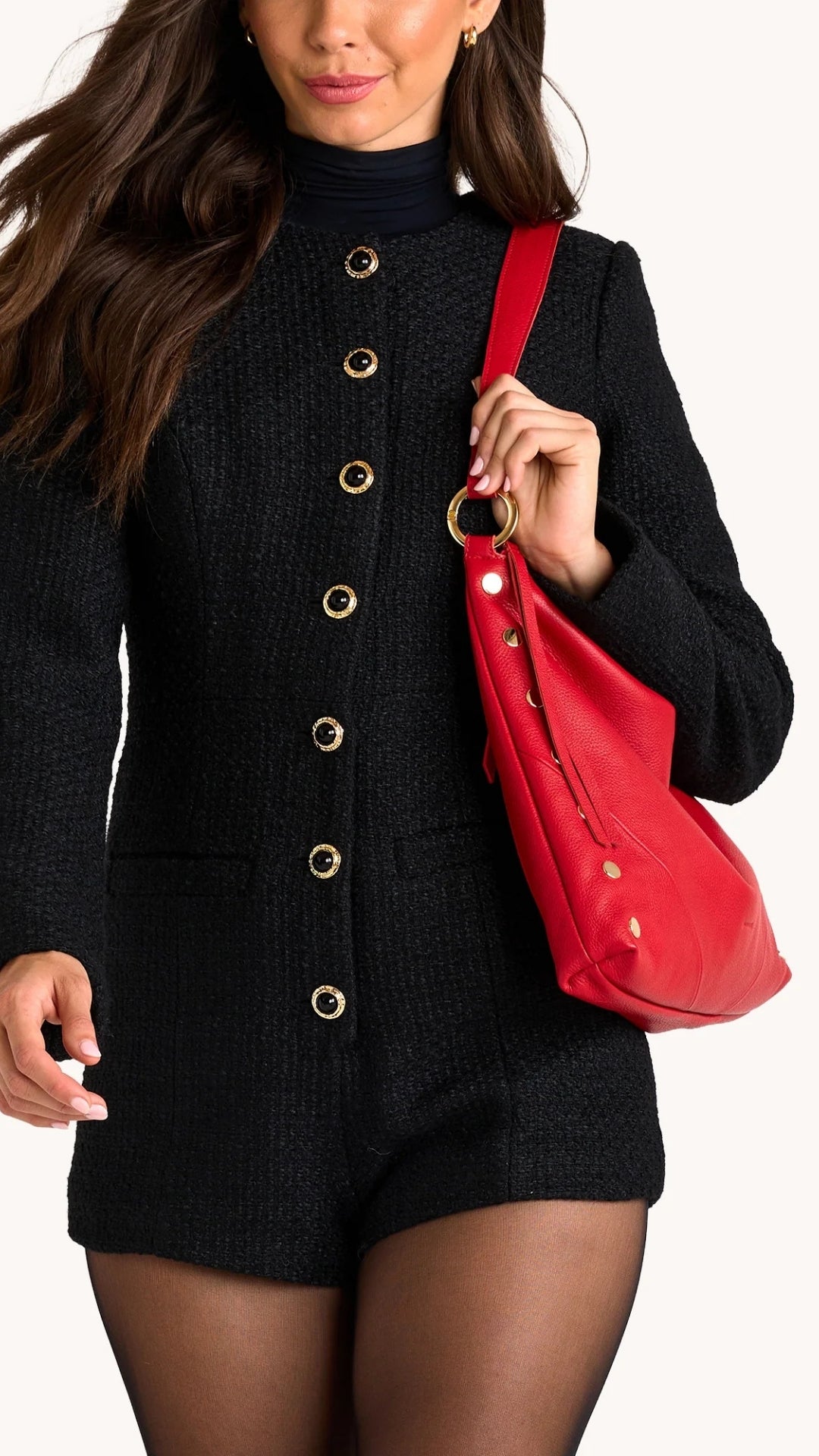 - Shiny gold hardware