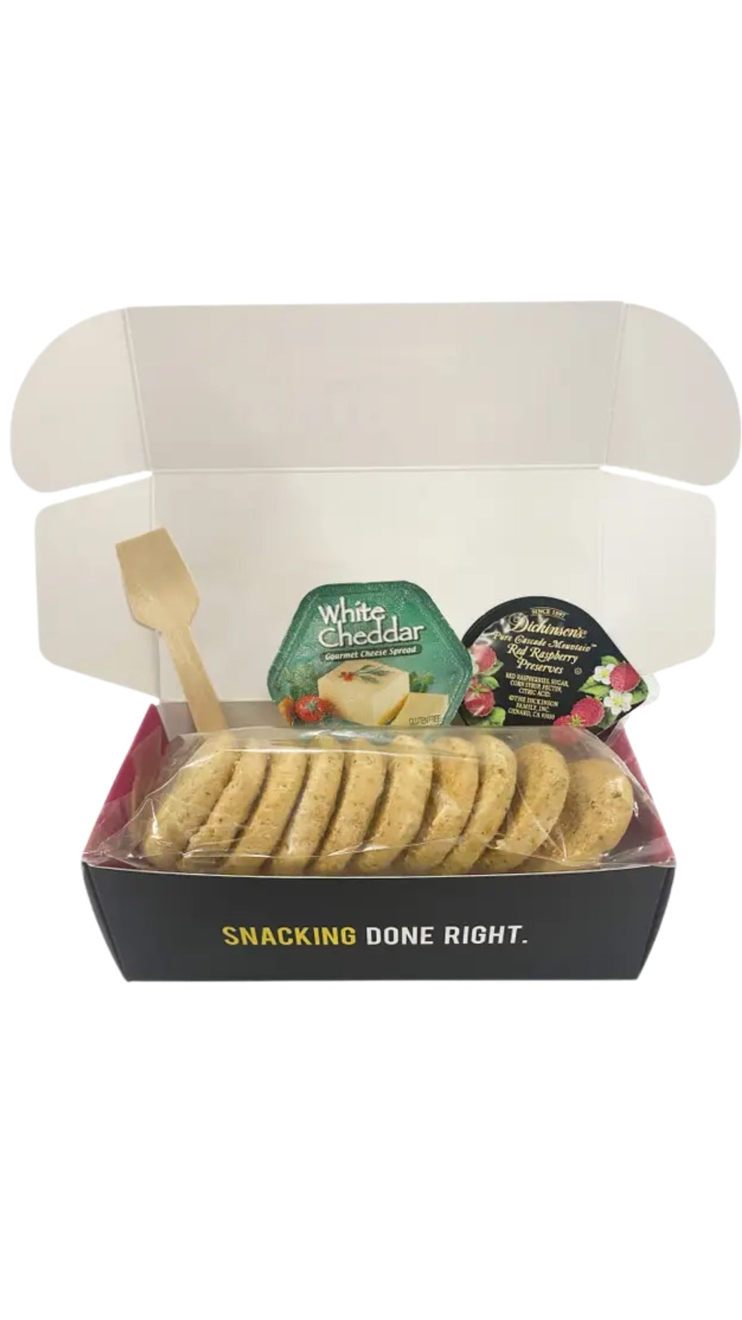 Smaller portions with the same delicious flavor. Includes our award-winning artisanal Red Wine & Rosemary crackers, cheese and jam.