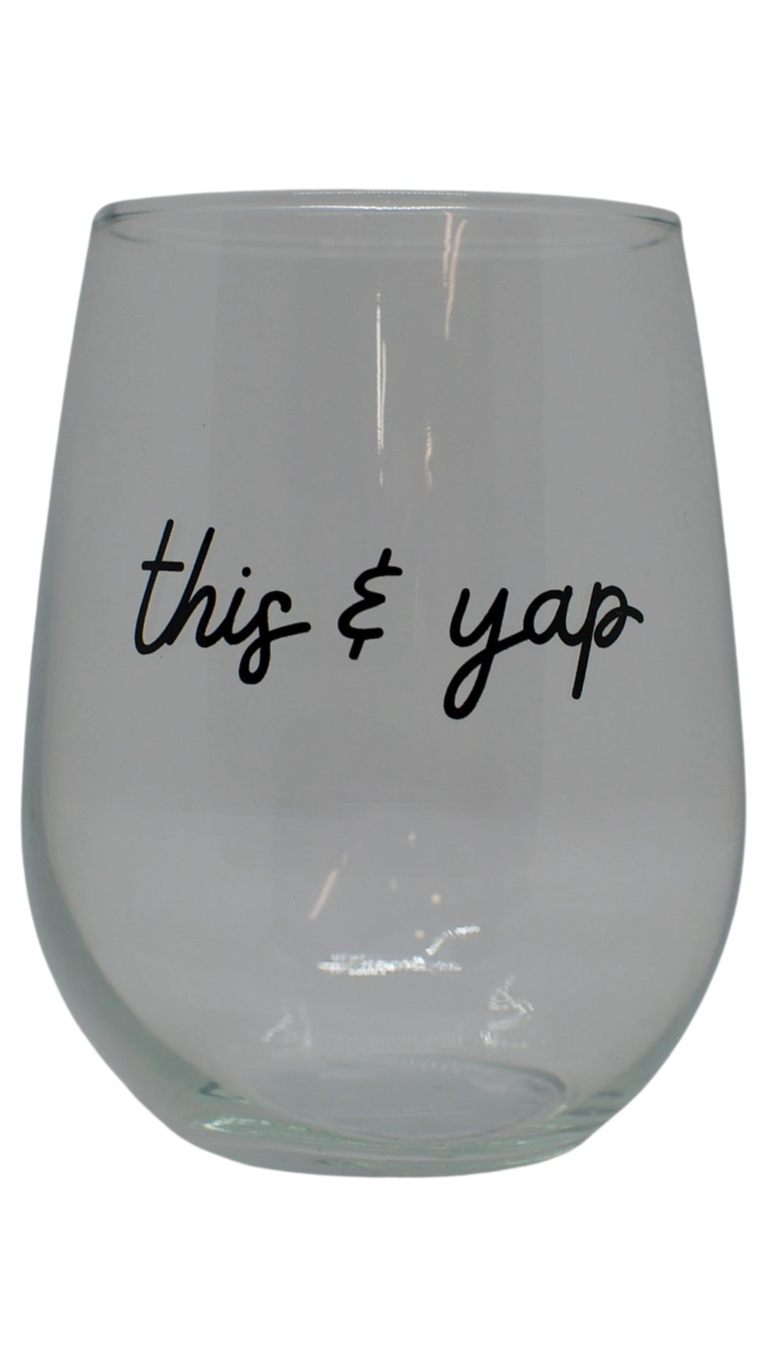 Bring a splash of fun to your drinkware with the This & Yap Stemless glass. Perfectly designed for casual sipping, it adds a playful twist to your favorite beverages. When you're sharing laughs with friends, this glass keeps the good times flowing with style and comfort.