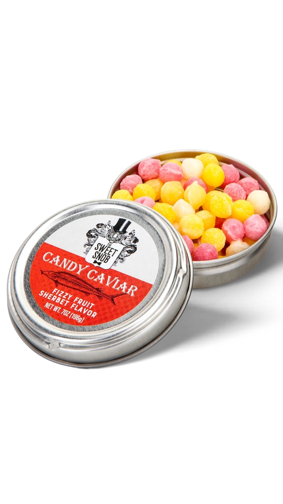 Candy Caviar offers a delightful mix of teeny-tiny hard candies, each with a crunchy exterior and bold, nostalgic flavours. Rich and classic, the Fruit Sherbet flavour surprises with a fizzy centre.
